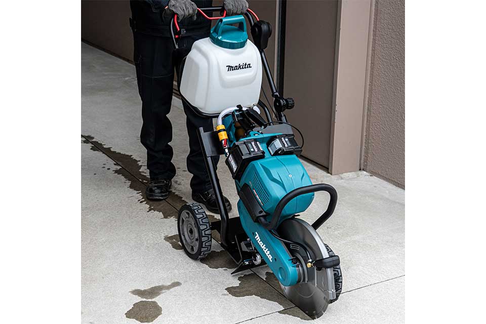 - Engineered for the Makita XGT 80V Power Cutter CE001G, this tool seamlessly integrates with the trolley, operated by the handlebar-mounted lever