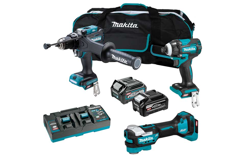 40Vmax 2.5Ah Battery (BL4025), 40Vmax XGT Tabless High Output 4.0Ah Battery (BL4040F), 40Vmax XGT Dual Rapid Charger (DC40RB), tool bag (191W32-7)