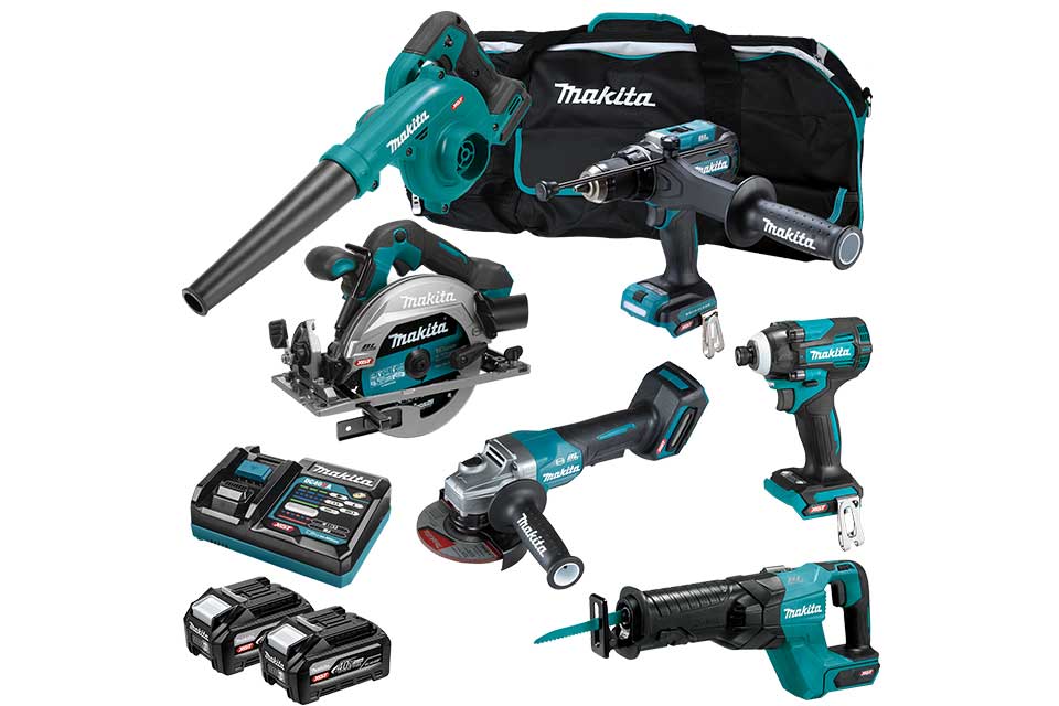 2x 40Vmax XGT Tabless High Output 4.0Ah Batteries (BL4040F), 40Vmax Rapid Charger (DC40RA), 6-Pc tool bag