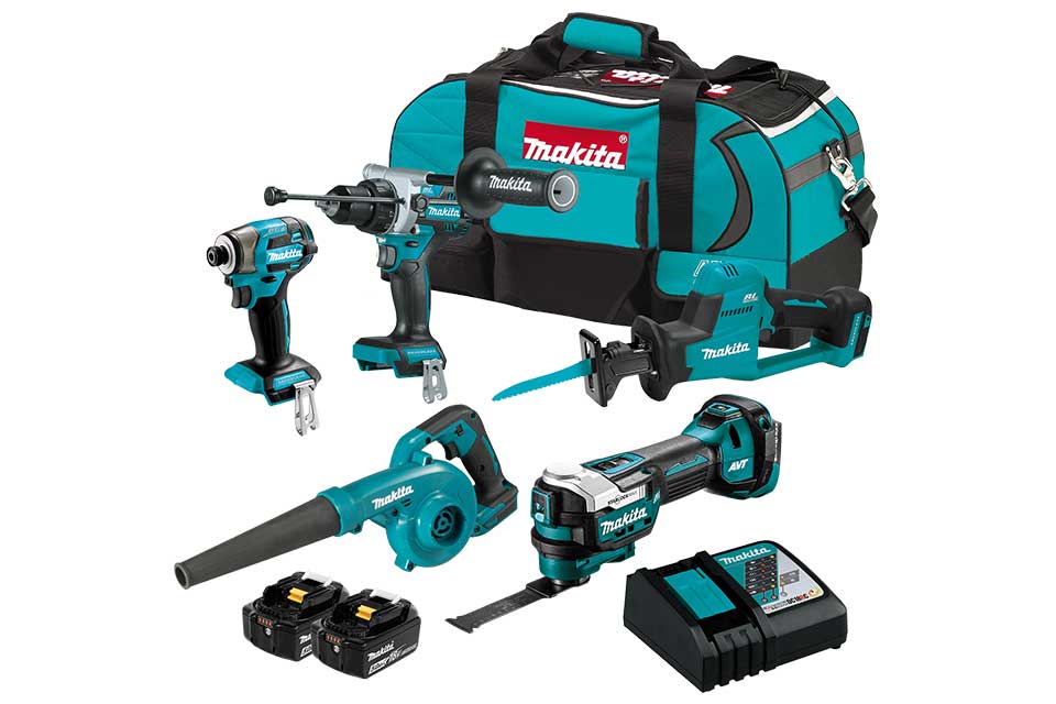 2 x 5.0Ah batteries (BL1850B), Charger (DC18RC), Tool Bag